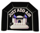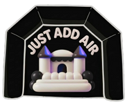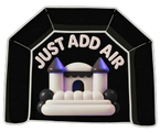 Our All Black Package consists of the Black Inflatable Marquee and the Black Bouncy Castle. You can choose to have the black marquee plain or with your choice of art work attached. For the bouncy castle you can choose black balloons to continue the all black theme or select from any other colour balloons to put in the wind tunnel. The marquee is 12x15ft and the bouncy castle is 12x12ft.