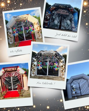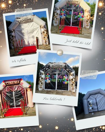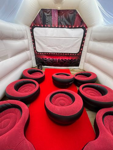 Inflatable marquee with our cinema theme on the outside and matching inside cinema theme. Projector, speaker and inflatable chairs will be provided.