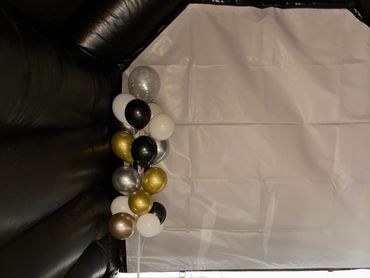 Our All Black Package consists of the Black Inflatable Marquee and the Black Bouncy Castle. You can choose to have the black marquee plain or with your choice of art work attached. For the bouncy castle you can choose black balloons to continue the all black theme or select from any other colour balloons to put in the wind tunnel. The marquee is 12x15ft and the bouncy castle is 12x12ft.